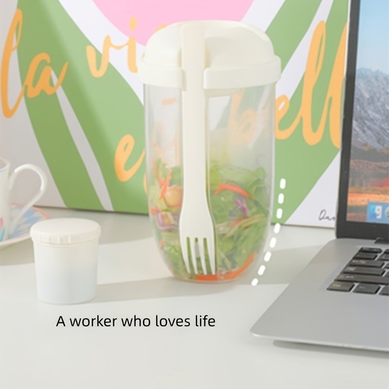 1pc Fresh Salad Cup; Keep Fit Salad Meal Shaker Cup; 1000ml/33.81oz; Portable Fruit Vegetable Milk Cup; 7.87''X2.33''