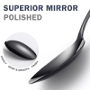 [nice weight & design]-our black cutlery has a nice weight size of eating utensil and handle is ergonomically designed to fit comfortably in your hand. Hammered tableware set with elegant and luxury design. This utensil set provides a unique hammered pattern and coated. Our hammered black silverware is highly mirror polished with smooth edges. Thicken and comfortable hand-holding curve enhances your dining experience, keeping your daily life vibrant.