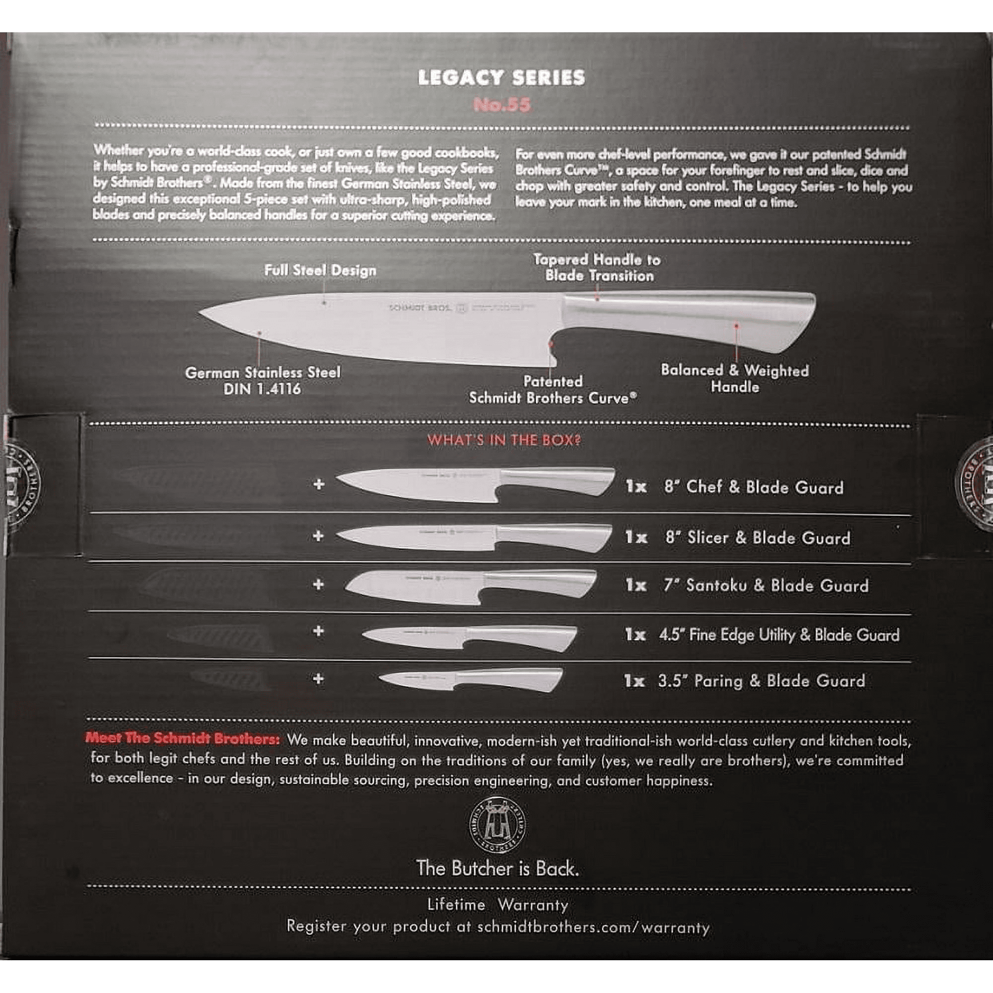 Schmidt Bros. Legacy Series, 5 Pc Ultra Sharp Knife Set + Blade Guards Schmidt Bros. Legacy Series, 5 Pc Ultra Sharp Knife Set + Blade Guards Schmidt Bros. Legacy Series, 5 Pc Ultra Sharp Knife Set + Blade Guards